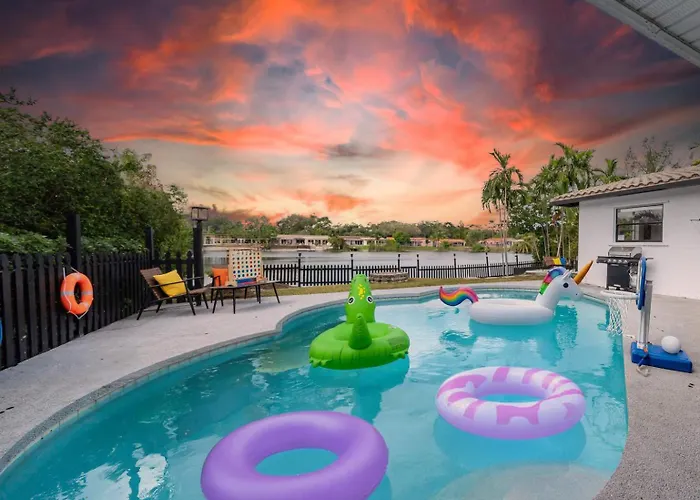 Een magnetron, een koelkast en keukengerei en andere self-catering faciliteiten, zoals koffie- en theevoorzieningen zijn aanwezig in een complete keuken. Mia Cafe, waar een breed scala aan maaltijden wordt geserveerd, ligt binnen minder dan 1 km ervandaan. Northeast 199th Street & Biscayne Boulevard busstation is naast Luxury Lakefront Retreat Perfect For Family Fun Villa gelegen. Deze accommodatie heeft een patio om op te ontspannen na een drukke dag, samen met een privézwembad.